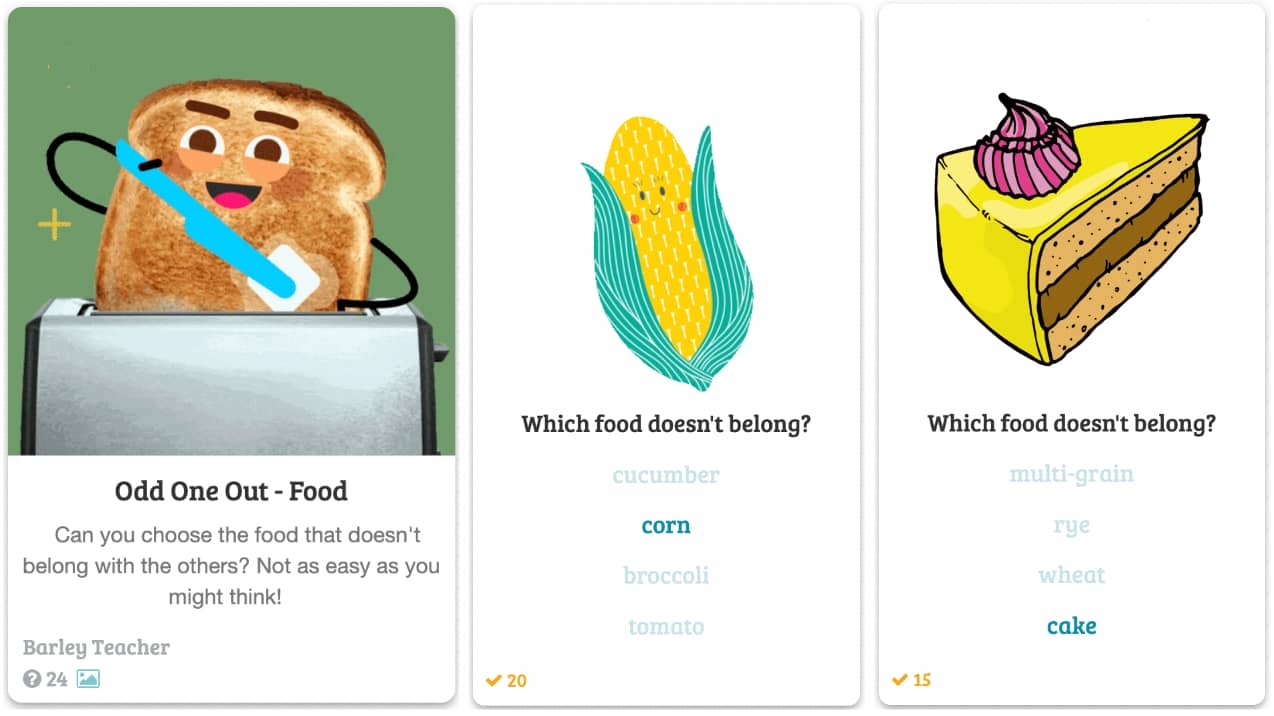 In this drool-inducing slice of foodie fun, your students are given various groups of four foods… and they need to decide which one of the four doesn’t fit.